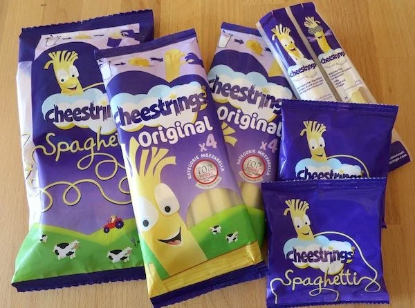 Beginnen wollen wir mit den Cheestrings aus der Privatmolkerei Bauer, die uns diese zum Testen freundlicherweise zur Verfügung gestellt haben. Es handelt sich um Käse in Form von Spaghetti und Sticks. Die Möglichkeit, den Käse in Streifen abzuziehen, sorgt bei Kindern für Spaß beim Essen. Als Snack sollen sie eine gesunde Alternative zu Süßigkeiten darstellen. Für Spiel, Spaß & Cleverness steht auch der Comic-Charakter Mr. Strings, der von Anfang an für die Marke steht. Mr. Strings stellt auch die für Kinder spannenden Fragen, die auf jeder Käsepackung zu finden sind und Wissen vermitteln.