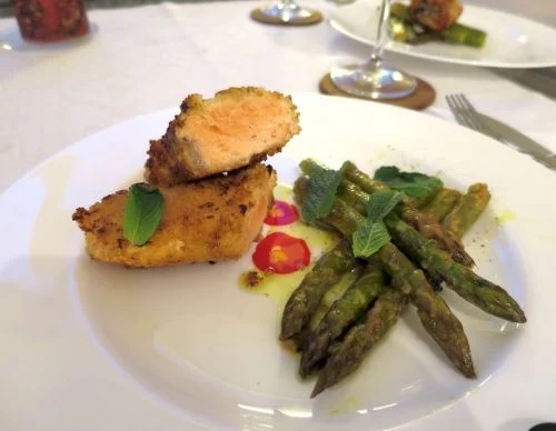 Heute findet ihr bei uns einen Hauch von Orient mit Couscous Lachs mit Senf-Minze Spargel. Vor zwei Wochen haben wir euch bereits ein klassisches Rezept für weißen Spargel präsentiert. Das heutige Geschmackserlebnis bietet euch die Möglichkeit die Spargelsaison nochmal mit grünem Spargel auszukosten. Grüner Spargel ist zarter als weißer Spargel. Es reicht daher ihn nur an den Enden leicht zu schälen. Auch muss er nicht so lange kochen und passt super zu leichten Gerichten wie Fisch oder Pasta. Wir haben ihn für euch mit einer leckeren Senf-Minze Butter glasiert. Die frische Minze unterstreicht die sommerlich-knackige Note eures Spargels und baut eine geschmackliche Brücke zum orientalischen Lachs. Dieser wird mit einem pikanten Couscous-Mantel paniert. Uns gefällt dieses Gericht besonders, weil die beiden Komponenten Minze-Spargel und Couscous-Lachs so perfekt harmonieren und euch zusammen ganz neue Geschmäcker erleben lassen. Genießt das Rezept für Couscous Lachs mit Senf-Minze Spargel für zwei Köche am besten gemeinsam mit eurem Partner.